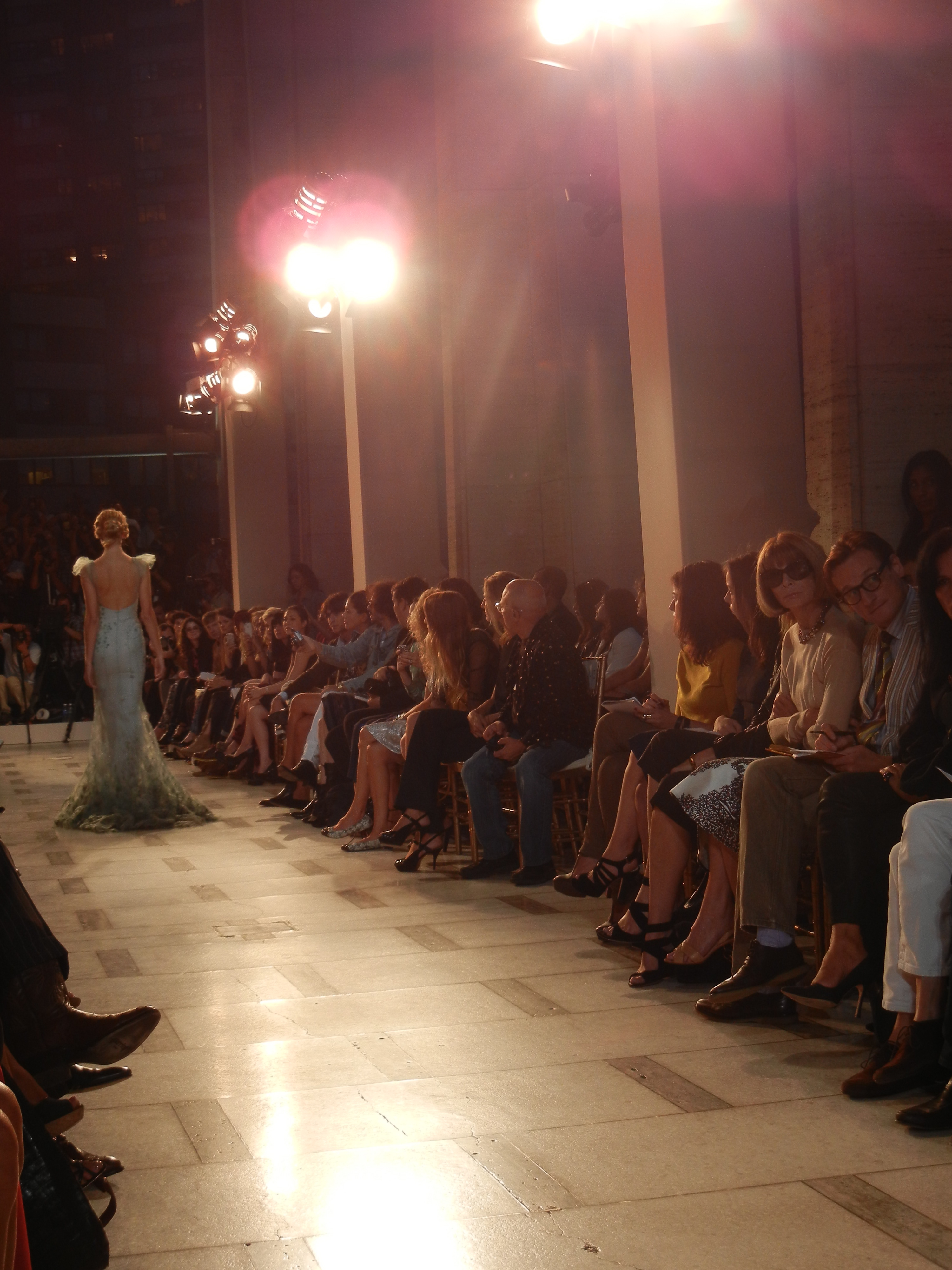 Here, front row at the Zac Posen show, I snapped a photo of my old pal Sessilee Lopez. Of course I was asked to walk the show but due to a strained paw, I was unable to accept the kind offer. I imagine it was somewhat for the best as I tend to overshadow the rest of the girls, and it is a good show of generosity of spirit to give others their time to shine.